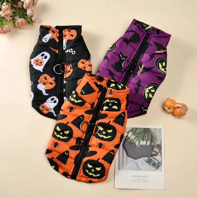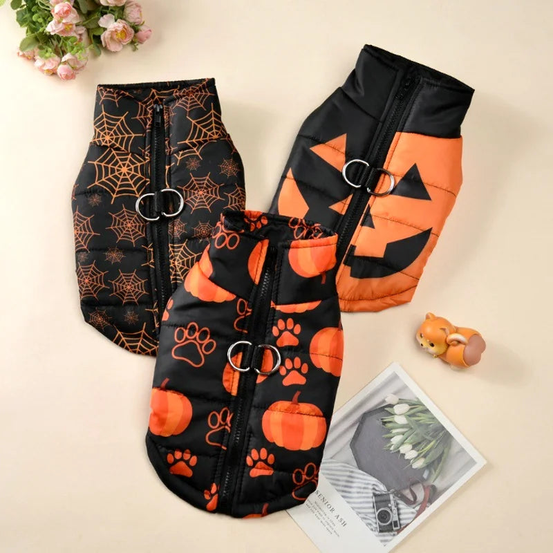Veste Halloween Chien - Manteau Hiver Imprimé Citrouille Imperméable